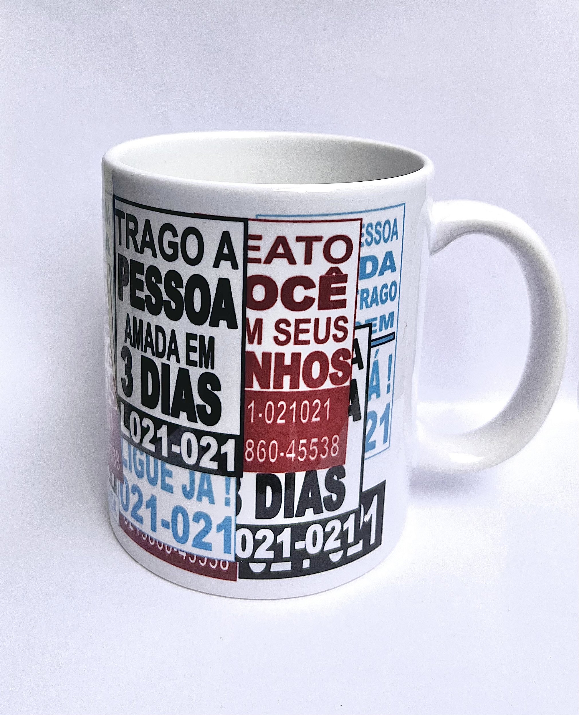 A caneca “Trago Seu Amor” traz a força dos cartazes de rua reinterpretados em um design autoral, com linguagem direta, popular e cheia de identidade. É mais do que um objeto: é expressão.